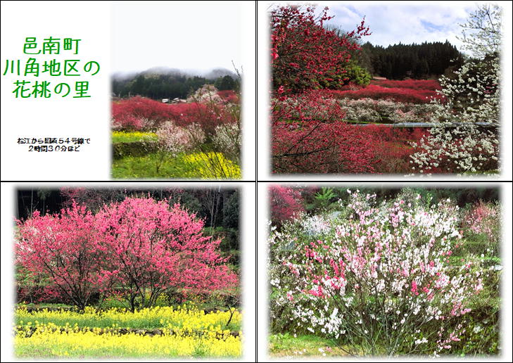 昨日はお休みで、春のお楽しみ邑南町川角地区の花桃を見に行ってきました。